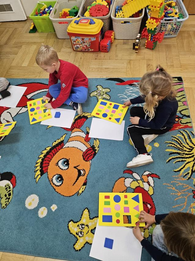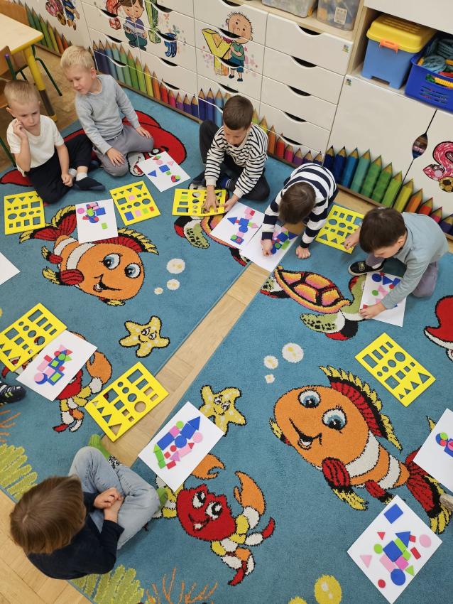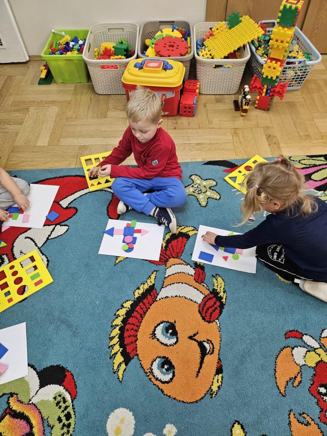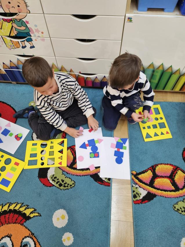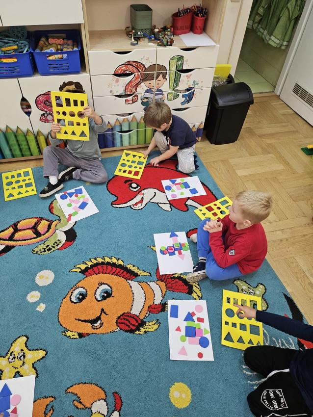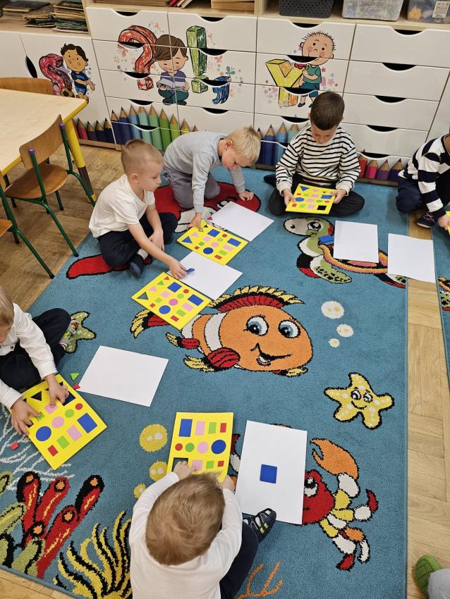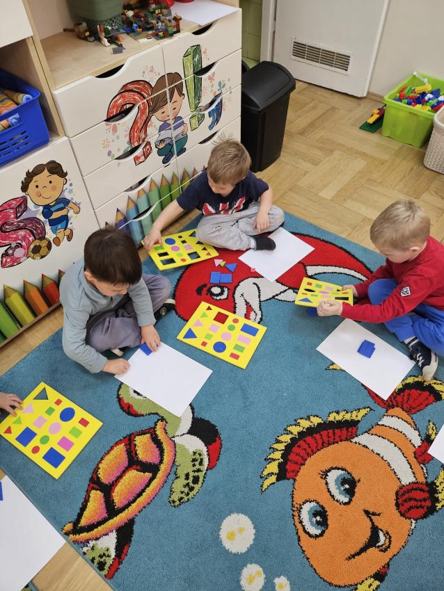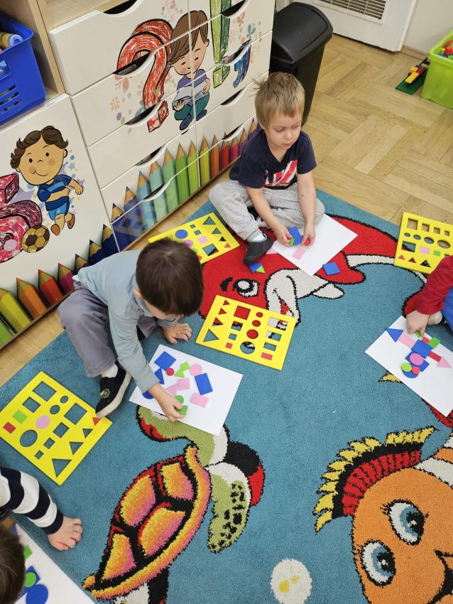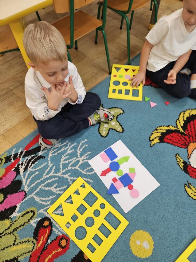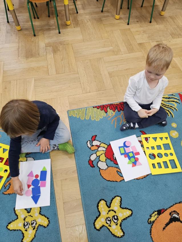 Zajęcia matematyczne w grupie Smerfów - "Roboty" - zabawy z figurami geometrycznymi