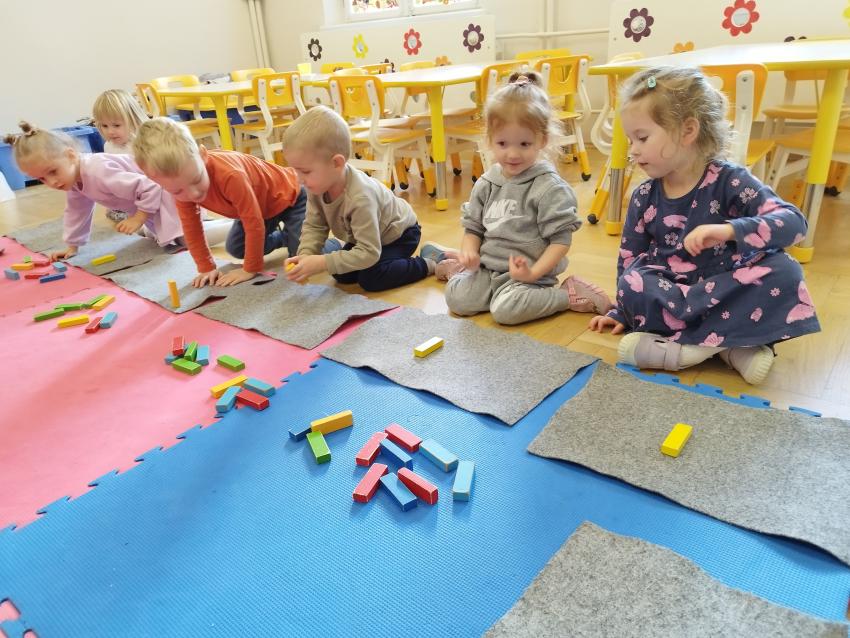Zajęcia matematyczne w grupie Smerfów - "Roboty" - zabawy z figurami geometrycznymi +11 Zobacz zdjęcia
